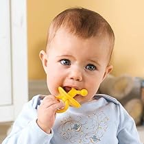 I was shopping on amazon for various other things when I came across this very different looking teether. I was a little leary of it because it looks so much like a pacifier and I didn't want the kids to decide they wanted a pacifier after getting them past a year old barely ever using a pacifier. I decided to try it anyways. My kids are 1 and a half and 2 and a half years old(younger of the 2 is my daughter). They love these teethers. They seem to be very sturdy and not likely to break up or crack like some similar looking types of rubber might.